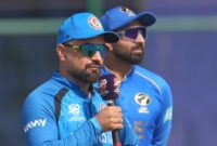 Afghanistan’s captain Rashid Khan, talks as United Arab Emirates’ captain Muhammad Waseem seems on in the course of the toss […]