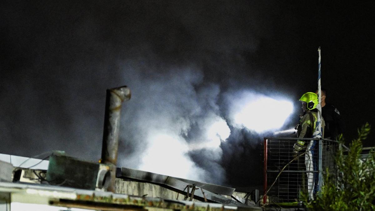 Rescue personnel work on the scene following reported missiles launched from Iran. File