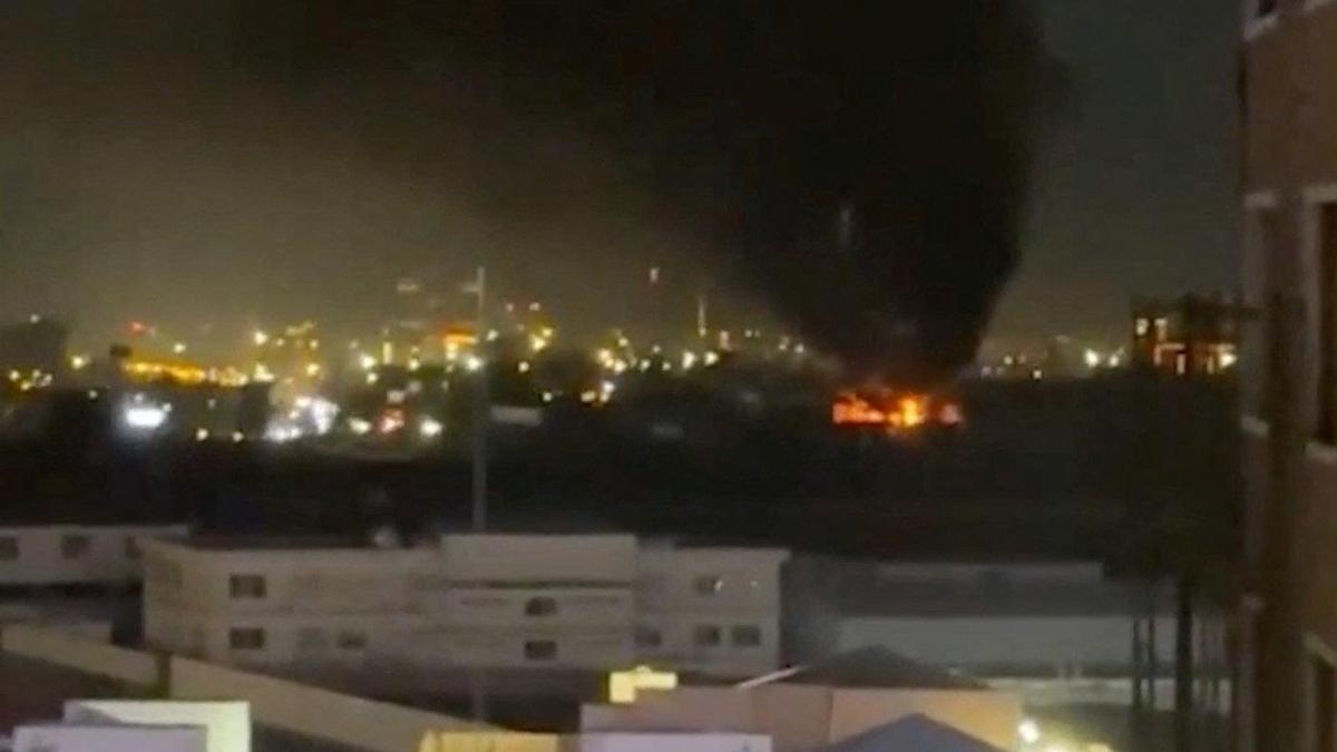 Smoke and flames rise following a drone assault on the UAE consulate in Erbil, Iraq on this screengrab obtained from social media March 9, 2026.