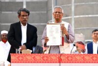 Bangladesh’s interim chief Muhammad Yunus shows the ‘July Nationwide Constitution’ exterior Parliament in October 2025. | Photograph Credit score: AP […]