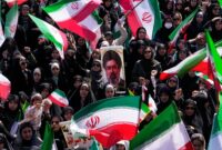 Ladies maintain Iranian flags and a portrait of Supreme Chief Ayatollah Mojtaba Khamenei throughout a state-organized rally. File | Photograph […]