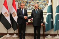 Egyptian International Minister Badr Abdelatty shakes palms with Pakistan’s Deputy Prime Minister and Minister for International Affairs Mohammad Ishaq Dar […]