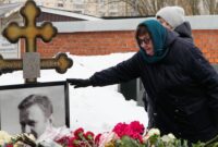 Late Russian opposition chief Alexei Navalny’s mom Lyudmila Navalnaya touches his portrait at his grave, two years after his demise, […]