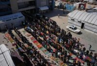 Muslim worshippers carry out Friday prayers throughout the holy month of Ramadan at Salah al-Din College, which has been transformed […]
