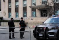 Members of the police stand guard forward of a briefing by Deputy Chief Frank Barredo (TPS) and Chief Superintendent Chris […]