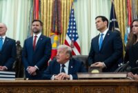 From left, Israeli Ambassador to the U.S. Yechiel Leiter, Vice President JD Vance, Secretary of State Marco Rubio, and Lebanese […]
