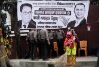 A municipal employee cleans a street close to the chairman’s workplace of the Bangladesh Nationalist Celebration (BNP) a day after […]