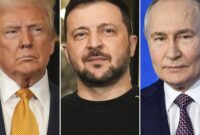 On this mixture of file pictures, U.S. President Donald Trump, left, and Ukraine’s President Volodymyr Zelenskyy, middle, are seen on […]