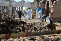A person clears the rubble of his broken home, which collapsed after heavy rains in Bannu, Khyber Pakhtunkhwa province, in […]