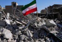 An Iranian flag is positioned among the many ruins of a police station struck on March 2, 2026, throughout the […]